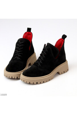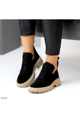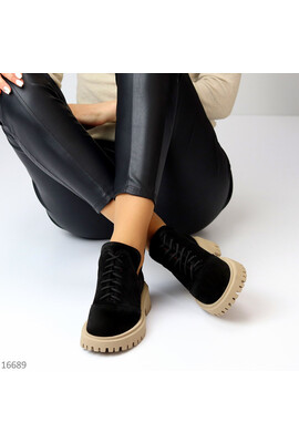 Код 16689 ДОСТУПНІ ПІД ВІДШИВ Розміри 36-40 Туфлі на шнурках "Lagoon" Матеріал - НАТУР. ЗАМША Всередині - НАТУР. ШКІР. ПІДКЛАД Сезон - Демі Колір - Чорний/Беж Висота від п'ятки - 10см Підошва - 4,5см/3см Виробник - Україна На середню стопу Розмір у роз...