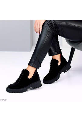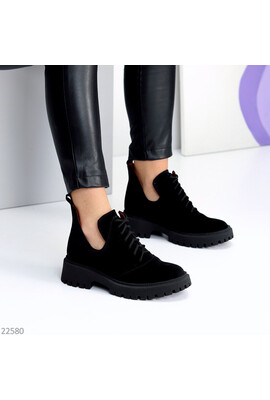 Чорні замшеві туфлі на шнурках Lagoon 22580 - Интернет-магазин - ELENKA