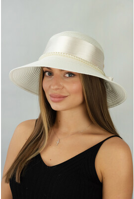 Женская шляпа Ванда с жемчугом белого цвета 1722 - Интернет-магазин - ELENKA