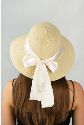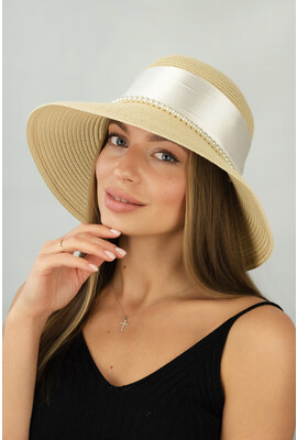 Шляпа доступна в нескольких цветах: белом, темном бежевом и светлом бежевом, что позволяет выбрать вариант, идеально сочетающийся с вашим летним гардеробом. Тулья украшена широкой атласной лентой, которая добавляет изысканности и женственности вашему образу.