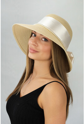 Женская шляпа Ванда с жемчугом 1722 бежевая