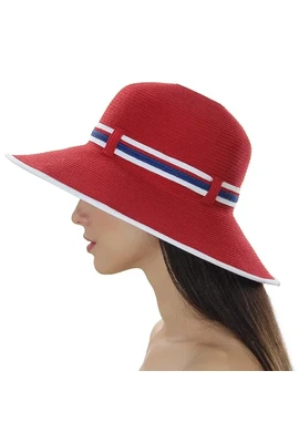 Женская шляпа Del Mare Модель: 131 Цвет: 13 Состав: capron Ширина поля: 9 см. Диаметр шляпы: 36 см. Высота тульи: 8 см. Размер: 56-58 Цвет основной: красный. Цвет дополнительный: синий, белый. Аксессуар: лента. Детали: пластиковый каркас.