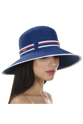 Женская шляпа Del Mare Модель: 131 Цвет: 05 Состав: capron Ширина поля: 9 см. Диаметр шляпы: 36 см. Высота тульи: 8 см. Размер: 56-58 Цвет основной: синий. Цвет дополнительный: красный, белый. Аксессуар: лента. Детали: пластиковый каркас.