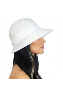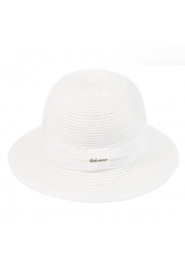 Женская шляпа Del Mare Модель: 140 Цвет: 02 Состав: capron paper Ширина поля: 4 -8 см. Диаметр шляпы: 28 см. Высота тульи: 8 см. Размер: 56-58 Цвет: белый. Аксессуар: лента. Детали: пластиковый каркас.