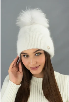 Жіноча в'язана шапка з закотом і бубоном "Пілар" — це стильний і затишний аксесуар для холодної пори року. Шапка виготовлена з високоякісної вовни з додаванням ніжної ангори, що забезпечує комфорт і тепло. Пов'язана гумкою 1*1, вона чудово облягає голову та дає змогу досягти ідеальної посадки.