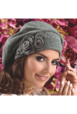 Берет жіночий (EDITH) Об'ємний глибокий жіночий берет на ніжці. Прикрашений квітами збоку та декоративним елементом з основного матеріалу. Країна-виробник: Польща Фірма-виробник: WILLI Склад: 100% бавовна