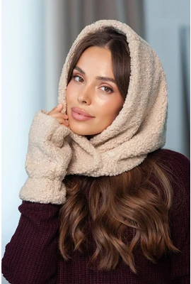Капор и митенки из экомеха "Тедди" Люкс 010 бежевий