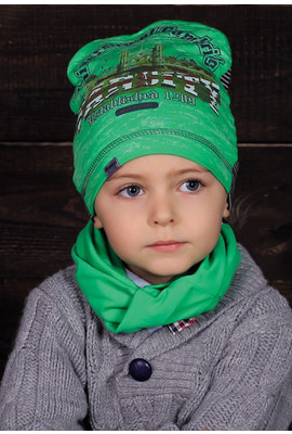 Главная страница Детские головные уборы Комплект с двухсторонней шапкой "Кембридж" - зелёный