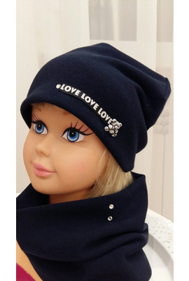 Модель Тедди в синем цвете. Шапка и хомут Шапка в одном размере. Тянется от 48 до 56. Материал: плотный двойной трикотаж.