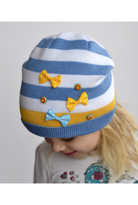 Весенняя шапка из хлопка "Пуговицы" - жёлто-голубая - Интернет-магазин - ELENKA