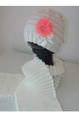 Шапка в размерах: размер 48-50 ( потянется до 52) размер 52-54 Цвет шапки: пломбир (бело-молочный) с розовыми полосками Состав пряжи: 50% шерсть, 50% акрил К шапке есть в тон шарф