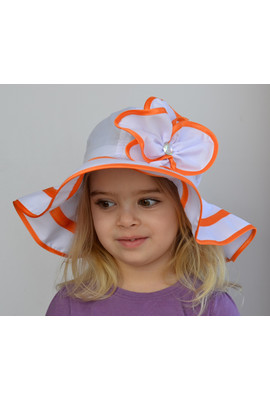 Панамка с широкими полями. Отделка - большой цветок из ткани. Состав: хлопок. Выпускается в двух размерах: 50-52 и 52-54 Сзади вшита резиночка. Цвета в наличии указаны в названии.