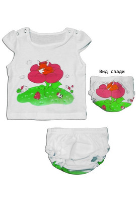 - В комплект ясельный входят: Футболка из легкой трикотажной ткани с застежками-кнопки на плечах Глубокие трикотажные трусики, которые подходят для носки вместе с подгузником. Цвет: Белый; Полотно: Кулир; Состав: 100% хлопок; Оформление: Прямая трансферная печать (накат); Размеры: 62, 74, 80, 86.