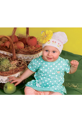Ніжна косиночка для маленкої дівчинки. Надійно захищає голівку та вушка вашої малечі. Шапочка легка у догляді. Добре переносить прання, не розтягується та не знебарвлюється.