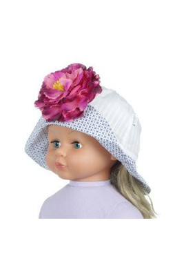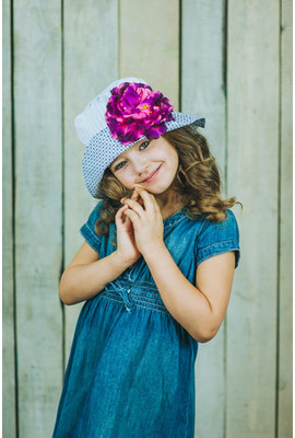 Главная страница Детские головные уборы ХЛОПКОВАЯ ШЛЯПКА С ЦВЕТКОМ "ТИНА" - БЕЛО-синий