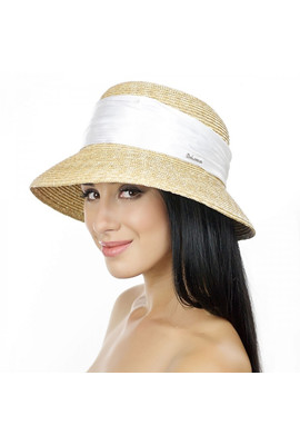 Женская шляпа Del Mare Модель: 079 Цвет: 43 Состав: соломка, атлас Ширина поля: 7,5 см. Диаметр шляпы: 30 см. Высота тульи: 11 см. Размер: 56-58