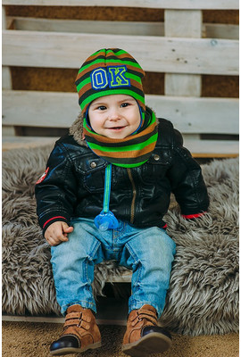 Шапочка йде в наборі з хомутиком – слюнявчиком . Шапочка з подовженими вушками дбайливо захищає від вітру та холоду. Внутрішня сторона шапочки 100 % бавовна не викликає алергічних реакцій. Після прання шапка зберігає форму та колір. -