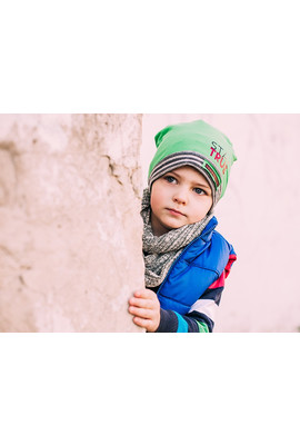 Размеры: 48. Цвет: сине-зелёный. Ткань: трикотаж (лайкра). Двухсторонняя шапка детская Колт предназначена для мальчиков. Перед и зад головного убора декорированы по-разному, поэтому можно носить его и поворачивать в зависимости ...