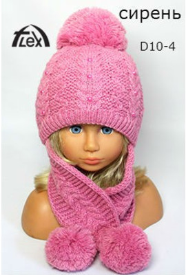 УШАНКА-ШАРФИК НА ДЕВОЧКУ 1,5-3 ЛЕТ "БУСИНКА" - сирень