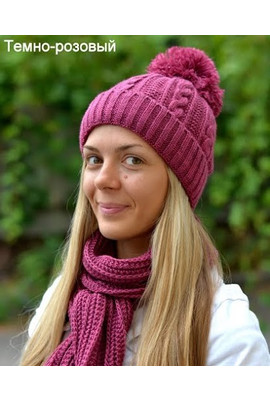 - Женская зимняя шапка, а также для девочек от 5 лет. Внутри полностью на флисе, с отворотом. Украшена вязаными косами и большим бубоном. Очень удобная и теплая. Цвета: белый, черный, серо-голубой, молоко, коричневый, бежевый, фиолетовый, темно-розовый, пепельно-розовый, светло-серый, средне-серый, терракотовый, сиреневый, бирюза+желтый Есть такая же модель с бубоном из песца код 072 или в комплекте с шарфом код 074: