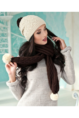 • Вязаная женская зимняя шапка и шарф из комплекта «Монтана» станут идеальной покупкой для современных успешных молодых леди, ценящих в образе индивидуальность. Такой комплект позволит выглядеть привлекательно и оригинально и не отставать при этом от течений современной моды. Удобная вязаная зимняя шапка с нитяным бубоном плотно облегает голову, не причиняя дискомфорта, и хорошо согревает в холодную погоду. Головной уборсвязан узорной вязкой и декорирован оригинальной брошью со стразами «Сваровски», что придает ему еще больше изысканности. Шарф связан в той же технике, что и шапка и украшен бубонами. В состав изделий входят натуральная шерсть и ангора, а также эластан и ПАН-волокна в оптимальном соотношении. Это обуславливает высокие потребительские и эксплуатационные свойства комплекта.