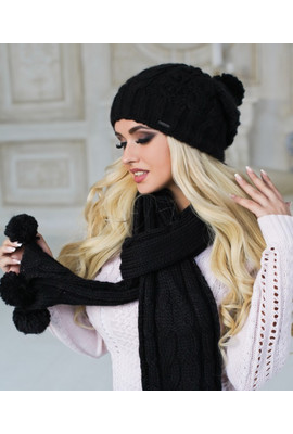 ВЯЗАНЫЙ КОМПЛЕКТ ШАПКА И ШАРФ "КАРЕЛИЯ" - 4152-10 чёрный