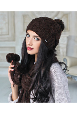 ВЯЗАНЫЙ КОМПЛЕКТ ШАПКА И ШАРФ "КАРЕЛИЯ" - 4152-10 коричневый
