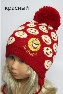 ШАПОЧКА "СМАЙЛИК" НА 1,5-3,5 ГОДА - красный - Интернет-магазин - ELENKA