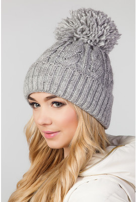 ЗИМНЯЯ ШАПКА С БОЛЬШИМ ПОМПОНОМ "ТЕССА" - CS 40503 светло-серый