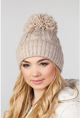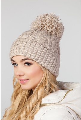 ЗИМНЯЯ ШАПКА С БОЛЬШИМ ПОМПОНОМ "ТЕССА" - CS 40507 бежевый