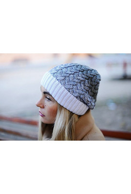 Главная страница Женские шапки Осень-Зима Двухцветная вязанная шапка - 164-201 серо-белый