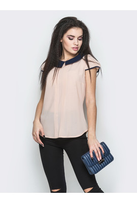 Стильная блузка с контрастной окантовкой на рукавах. Воротник модели – отложной, черного цвета. Изделие свободного кроя. Длина блузки - 58 см. Длина изделия - 58 см. Материал: Креп-шифон Состав: 60 % полиэстер, 40 % вискоза Растяжимость: нет Размеры: 4...
