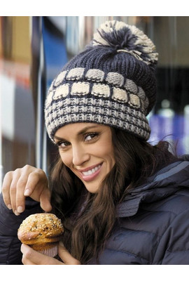 Шапка женская (AMANDA) Молодежная одинарная трикотажная шапка рельефной вязки с закрепкой сзади и помпоном из основной пряжи. Шапка украшена двумя полосами рельефной вязки из пряжи с люрексовой нитью двух цветов. Страна производитель: Польша Фирма прои...