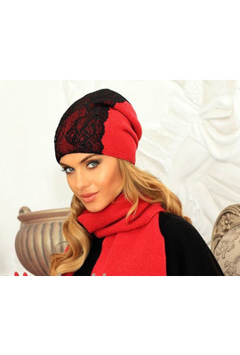 Шапка с кружевом и бусинами "Констанция" - красно-бордовый