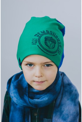 Размеры: 48. Цвет: сине-зелёный. Ткань: трикотаж (лайкра). Двухсторонняя шапка детская Колт предназначена для мальчиков. Перед и зад головного убора декорированы по-разному, поэтому можно носить его и поворачивать в зависимости ...