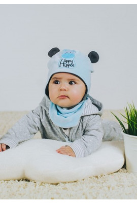 Размеры: 42, 44, 46. Цвет: молочный, голубой. Набор детский Симба – замечательный подарок для любого карапуза. Его составляет нагрудник-шарф и стильная шапочка с декоративными ушками. Завязки плотно прилегают к голове, не пропуская вовнутрь холод и вет...