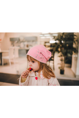Весенняя/осенняя шапка для девочек. Связана из хлопка в один слой. Подходит всем от 3 лет. ОГ 50-54 см. Глубина шапки регулируется сзади с помощью зажима. Фасон удлиненный, спереди отделка - бантики и пуговицы. Сзади шапка скреплена зажимом. Зажим этот...