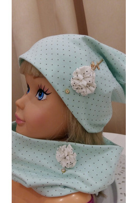 Модель Бритни - шапка и хомут. Набор в одном универсальном размере. Тянется от 48 до 54 размера. Материал: плотный двойной трикотаж (96% хлопок, 4% эластан).
