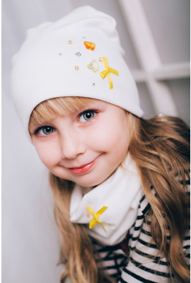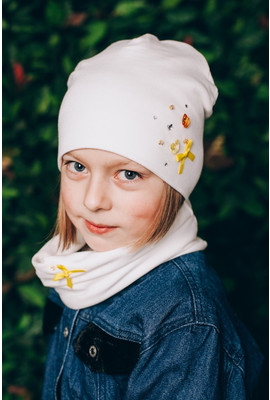 Модель Флорида состоит из шапки и хомута. Набор в одном универсальном размере. Тянется от 50 до 54 размера. Материал: плотный двойной трикотаж (96% хлопок, 4% эластан).