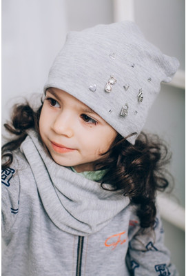 Трикотажная шапка и хомут "Стелла" - 300 серый