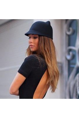 Оригинальная шляпка "кошечка" с маленькими ушками подойдет веселым и уверенным девушкам. Шляпа с небольшими загнутыми наверх полями. Ее можно сочетать с вещами из повседневного гардероба, джинсами и свитшотами или футболками. Материал: 50% шерсть, 50% ...