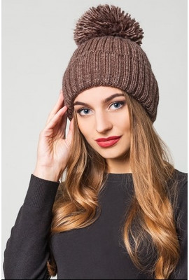 Роскошная зимняя шапка с толстым отворотом и большим помпоном.