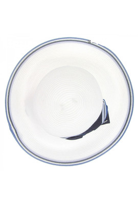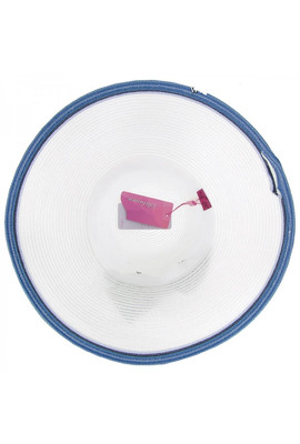 Женская шляпа Del Mare Модель: 007 Цвет: 02.05 Состав: capron, paper, cotton Ширина поля: 11 см. Диаметр шляпы: 38 см. Высота тульи: 11 см. Размер: 56-58 Цвет основной: белый. Цвет дополнительный: синий, голубой. Аксессуар: бант из ленты и тесьмы. Дета...