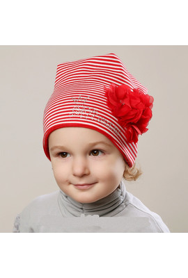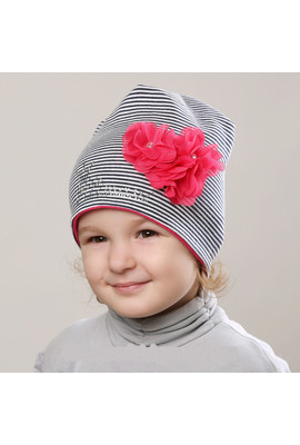 Очень красивая трикотажная шапка для девочки с оригинальным объемными цветами. Модная полоска и удлиненная форма обязательно понравятся маленьким модницам. Приятным бонусом станет износоустойчивый, комфортный трикотаж, из которого изготовлены шапочки. -