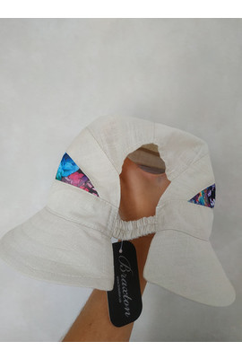 Головной убор изготовлен из натурального льна – экологически чистого материла, который имеет нежную легкую текстуру, обеспечивающую приятную прохладу в знойный день. Такая шляпа хорошо защитит глаза от заставляющих щуриться солнечных лучей. Купив данную модель, женщина будет носить ее с удовольствием, привлекая восторженные взгляды окружающих.