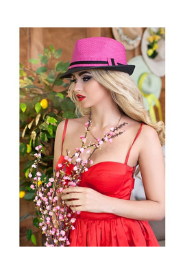 Женская шляпа Del Mare Модель: 078 Цвет: 32 Состав: соломка, cotton Ширина поля: 8 см. Диаметр шляпы: 30 см. Высота тульи: 11 см. Размер: 56-57