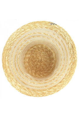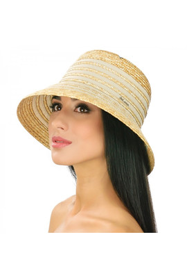 Женская шляпа Del Mare Модель: 083 Цвет: 30 Состав: соломка, cotton, polyester Ширина поля: 9 см. Диаметр шляпы: 30 см. Высота тульи: 10 см. Размер: 56-58 Цвет основной: бежевый. Цвет дополнительный: золотистый.
