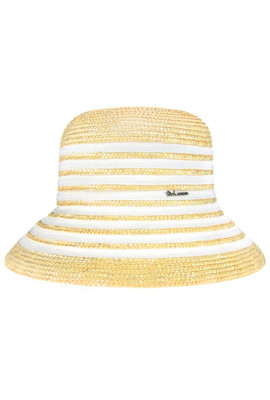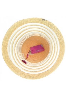 Женская шляпа Del Mare Модель: 083 Цвет: 02 Состав: соломка, cotton, polyester Ширина поля: 9 см. Диаметр шляпы: 30 см. Высота тульи: 10 см. Размер: 56-58 Цвет основной: белый. Цвет дополнительный: золотистый.