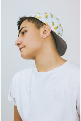 Розмір: S/M/L Кольори: бежевий, білий Тканини: 100 % бавовна Ананас чи пальми? Обирай! Fullcap для стильних підлітків. Яскравий прінт ананаси чи пастельні пальми неодмінно знайдуть свого власника. При використанні завжди відмінно зберігає форму та колір.