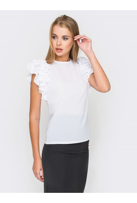 Изображения Блузка с декорированными рукавами 65307 белая 44 - Интернет-магазин - ELENKA